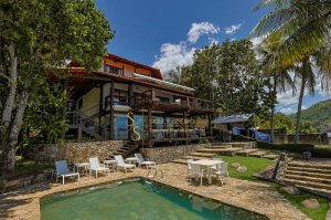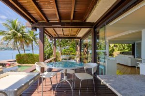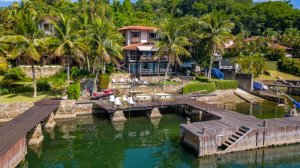 Com uma vista deslumbrante para o mar, essa casa conta com deck para grandes embarcações, ideal para quem busca praticidade e conforto em seus passeios náuticos.