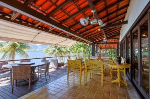 Com uma vista deslumbrante para o mar, essa casa conta com deck para grandes embarcações, ideal para quem busca praticidade e conforto em seus passeios náuticos.